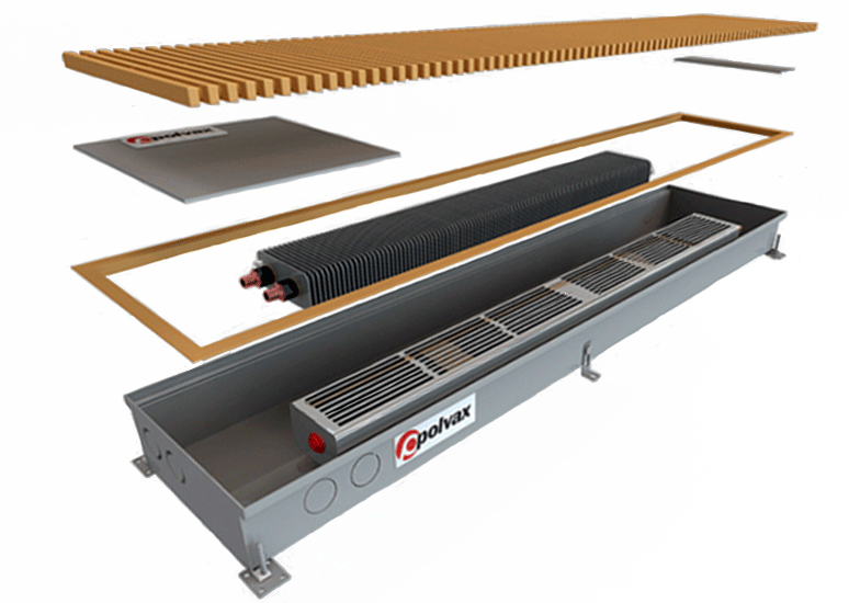 Внутрипольные конвекторы с принудительной конвекцией Polvax KV.300 – это элемент отопления радиаторного типа с высокой теплопроизводительностью, а также с плавной и точной регулировкой скорости оборотов вентилятора. Внутрипольные конвекторы с вентилятором имееют высокий КПД двигателя, повышенную тепловую мощность (на 200-250% больше чем с естественной конвекцией) и находят широкое применение в системах централизованного или индивидуального отопления для монтажа в помещениях с большой площадью остекления или с низким подоконным пространством.