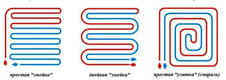 Так же важную роль играет метод укладки труб. Есть три варианта размещать трубы на поверхности пола: параллельный способ в виде змейки, спиральный - в виде улитки и комбинированный, когда соединяются оба способа.