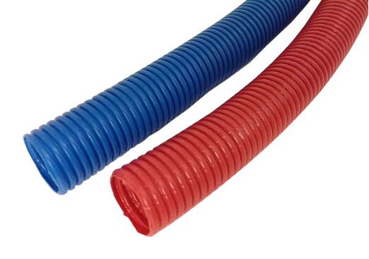 Гофрированная труба PVH.01. (гофрированный шланг) необходима для защиты металлопластиковых труб и труб из сшитого полиэтилена от механических повреждений при прокладке через строительные конструкции и деформационные швы бетонной стяжки теплого пола. Кожух гофрированной трубы выполнен из полиэтилена, окрашенного в красный или синий цвет, – для удобства распознавания трубопроводов различного назначения. Применяется для труб с наружным диаметром 16, 20, 25, 32 и 40 мм.