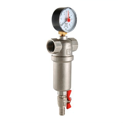 Самопромивний фільтр з манометром Valtec VT.389 – це сантехнічний елемент фільтрації з можливістю промивання, який дозволяє здійснювати очищення води та теплоносія у системах водопостачання чи опалення квартир, приватних будинків, промислових об'єктів для захисту різноманітного сантехнічного обладнання та побутової техніки.