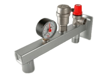 Група безпеки розширювального бака Valtec дозволяє захищати від перевищення тиску в системі, відведення з системи повітря і газів, контроль тиску в системі за допомогою манометра.