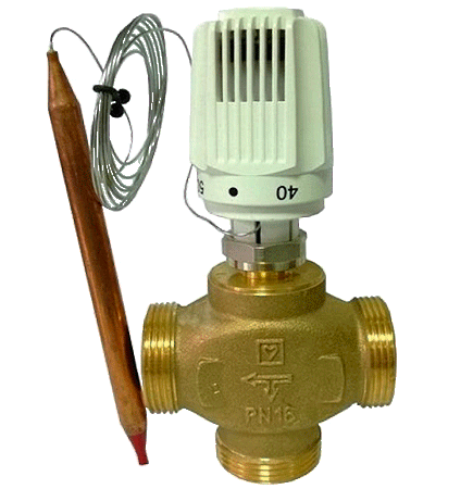 У регулюванні температури водяного опалення підлоги клапан Herz Calis TS RD встановлюється на зворотному трубопроводі. Якщо температура води на подачі в контур теплої підлоги збільшується, то шток клапана опускається, збільшуючи підмішування охолодженого теплоносія з обратки теплої підлоги в подачу, і закриваючи вихід на подачу до котла.