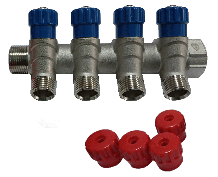 Колектори для води HLV встановлюються як на холодну, так і гарячу воду, а також "зворотню" систем опалення. Для позначення систем застосовується змінний комплект ручок – синього та червоного кольору.