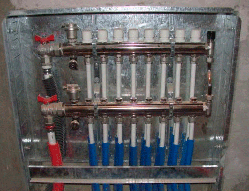 Робили розводку опалення на 10 радіаторів. Вирішили використовувати колекторну систему. Колектор дійсно італійський, дуже зручно балансувати контури, монтаж зробили швидко
