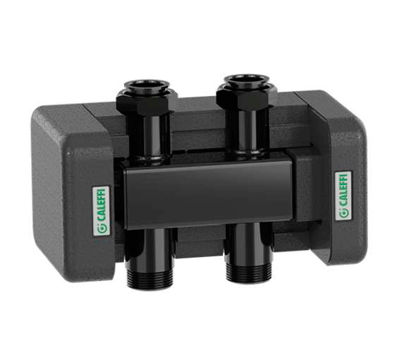 Гідрострілка в теплоізоляції для обв'язування опалювального котла Caleffi 550305 – це елемент для облаштування обладнання котелень, призначення якого полягає у гідравлічному балансуванні системи шляхом поділу котлового та опалювальних контурів у системах теплопостачання та ГВП. Гідравлічний розподільник має корпус прямокутної форми з приєднувальними різьбовими патрубками різної конфігурації: два призначені для підключення трубопроводів від джерела нагріву, і два підключення розподільного колектора.