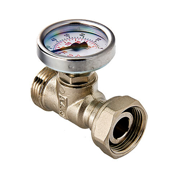 Трійник з термометром для колекторів теплої підлоги Valtec VT.4615 – це арматура, що контролює температуру теплоносія, яка значно спрощує експлуатацію та обслуговування опалювальних колекторних систем. Призначення трійника полягає у вимірі температури теплоносія у трубопровідних петлях теплої підлоги або радіаторної системи. Приєднується до колектора за стандартом "євроконус" за допомогою накидної гайки, різьблення для підключення до трубопроводу зовнішня трубна 3/4".