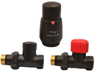 Прямий комплект для бічного підключення радіатора в чорному кольорі Vario term Royal ROGS0213CFP – це набір терморегулюючої та запірної арматури, що дозволяє підключити труби, які монтуються відкрито вздовж стін, до різних опалювальних батарей та рушникосушок. Регулювальні крани для радіаторів опалення використовують для монтажу опалювальних приладів у двотрубних системах при горизонтальному розведенні трубопроводів, а покриття чорного кольору покращує естетичний вигляд інтер'єру.