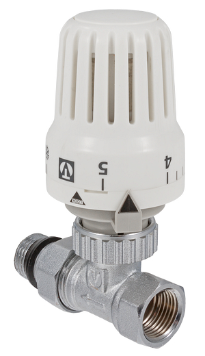 Прямий кран з термоголовкою для бокового підключення радіатора Valtec VT.048 – це термостатичний елемент, який призначений для підключення опалювальних приладів у двотрубних системах, коли розведення трубопроводів здійснюється вздовж стін.