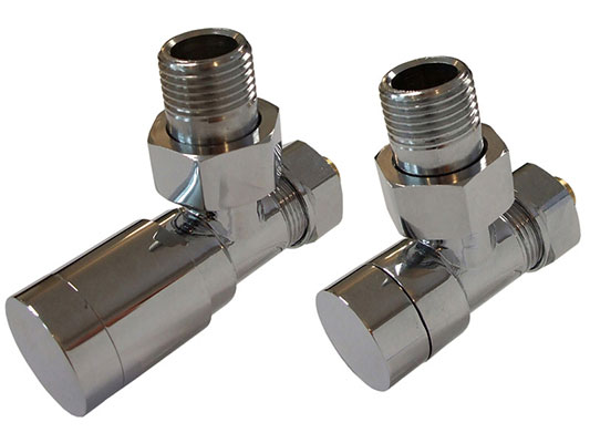 Кутовий комплект радіаторних кранів з ручним регулюванням білого хром Schlosser Elegant - це опалювальна арматура, призначена для підключення дизайнерських радіаторів опалення або сушки для рушників до трубопровідних систем, які виходять зі стіни.