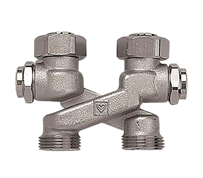 Перехресний вузол складається з двох однакових за розміром частин, які не пов'язані між собою, що дозволяє здійснювати роздільне підключення подавальної та зворотної магістралей систем опалення. Наявність запірних вентилів дозволяє повністю відключити радіатор від системи опалення для заміни або сервісного обслуговування, при цьому немає необхідності зливати теплоносій із усієї системи.