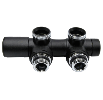 Ручний вузол нижнього підключення Vario term виконаний у чорному кольорі, і підходить для підключення різних дизайнерських радіаторів або рушникосушок.