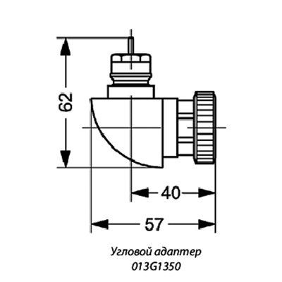 Кутовий адаптер Danfoss 013G1350 застосовується для встановлення термостатичних головок Danfoss RA 2991 на клапан серії RA-N (під клік Click).