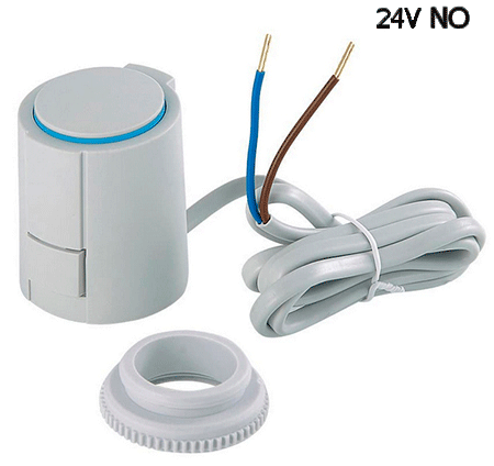 Сервопривід для опалення (теплої підлоги) Valtec нормально відкритий NC VT.TE3040.A.024 – це автоматичний елемент управління, призначення якого полягає у передачі сигналу з кімнатного термостата або контролера 24В на термостатичний клапан радіатора, внутрішньопідлогового конвектора або гребінки водяної теплої підлоги з різьбленням підключення М30х1,5 . При цьому здійснюється зменшення кількості теплоносія, що надходить до опалювального приладу, і відбувається підтримка необхідної температури в приміщеннях.