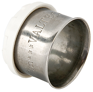 Гільза з обоймою-фіксатором для прес-фітингу VTm.290 VALTEC. Матеріал гільзи – нержавіюча сталь марки AISI 304, обойми-фіксатора – нейлон PA 6. Гільза має монтажний розтруб. Конструкція фіксатора забезпечує правильне розташування прес-насадки інструменту на з'єднувачі, контроль повноти одягання металополімерної труби на штуцер, відсутність електричного контакту алюмінієвого прошарку труби та латунного корпусу фітингу. Зусилля обтиснення гільзи – трохи більше 1200 М.