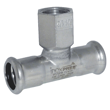 Трійник з внутрішньою різьбою з нержавіючої сталі InoxPres Raccorderie Metalliche 189102015 – це з'єднувач нержавіючих труб і фітингів з бічним переходом на внутрішню різьбу, що дозволяє підключати різні елементи водопровідних та опалювальних систем, які мають зовнішнє трубне різьблення.