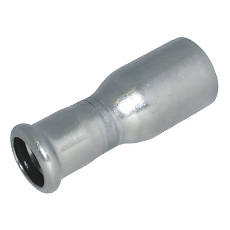 Однорозрубна редукційна муфта InoxPres з нержавіючої сталі Raccorderie Metalliche 191018015 – це редукційний елемент нержавіючої системи, призначений для з'єднання двох труб з різним діаметром, з меншого на більший або навпаки. У сплав фітинга RM з нержавіючої сталі типу AISI 316 додається молібден, і тому має більшу стійкість до хімічного впливу, ніж нержавіюча сталь 304. Фітинги зі сталі AISI 316 більш стійкі до розчинів сірчаної кислоти, хлоридів, бромідів, йодидів і жирних кислот і відносяться до жаростійких сталей, тобто мають високу стійкість до корозії при високих температурах сильно агресивних середовищах.