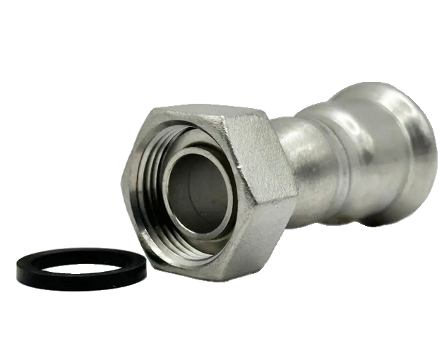 Прес-фітинг з нержавіючої сталі муфта з накидною гайкою AISI 304 Isotubi — це міцний і доступний елемент трубопроводів, на основі легованої сталі з високим вмістом хрому, що має універсальні властивості і дозволяє створювати роз'ємні з'єднання в системах водопостачання та опалення.
