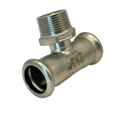 Прес-фітинг з нержавіючої сталі трійник перехідний на зовнішнє різьблення Isotubi — це частина сантехнічних інженерних систем, яка призначена розділити загальний потік води або теплоносія на два окремі трубопроводи. Фітинги виготовляються з нержавіючої сталі з високим вмістом нікелю та хрому, що дозволяє підтримувати механічну, фізичну та хімічну міцність системи при високих тисках та температурах тривалий час.