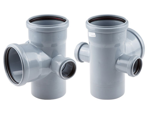 Каналізаційна двоплощинна хрестовина з двома відводами 50 мм вправо та вліво.