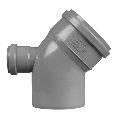 Коліно (куточок) каналізаційне під 450 з відведенням 50 мм назад.