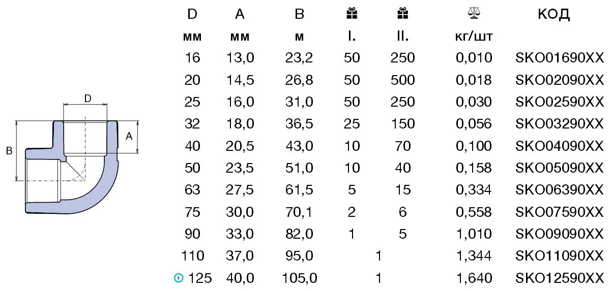 Номенклатура та технічні характеристики фітингів ппр Ekoplastik SKO90