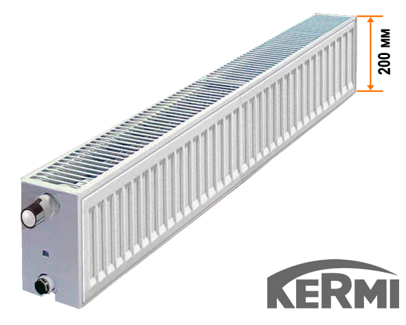 Низькі сталеві радіатори Кермі висотою 200 мм не комплектуються кріпленнями, вони підбираються та замовляються окремо. Це пов'язано з тим, що досить часто низькі моделі сталевих радитори встановлюють перед панорамними вікнами на ніжки, які необхідно підібрати окремо.