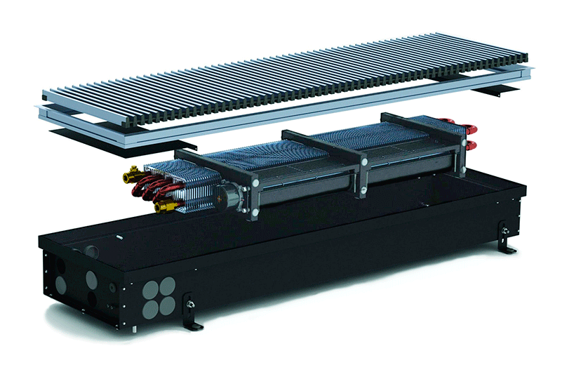 Внутрішньопідлогові конвектори з примусовою конвекцією Carrera 4SV2 Black - це елемент обігріву в системах водяного опалення з двома чотиритрубним теплообмінником і високоефективним вентилятором, який дає збільшену тепловіддачу і застосовується для повноцінного обігріву сухих приміщень, в яких є велика. Конвектори з вентилятором Carrera 4SV2 застосовуються як єдине джерело системи опалення або комбінуються з іншими опалювальними приладами для відсікання холодного повітря від панорамних вікон, засклених балконів або лоджій.