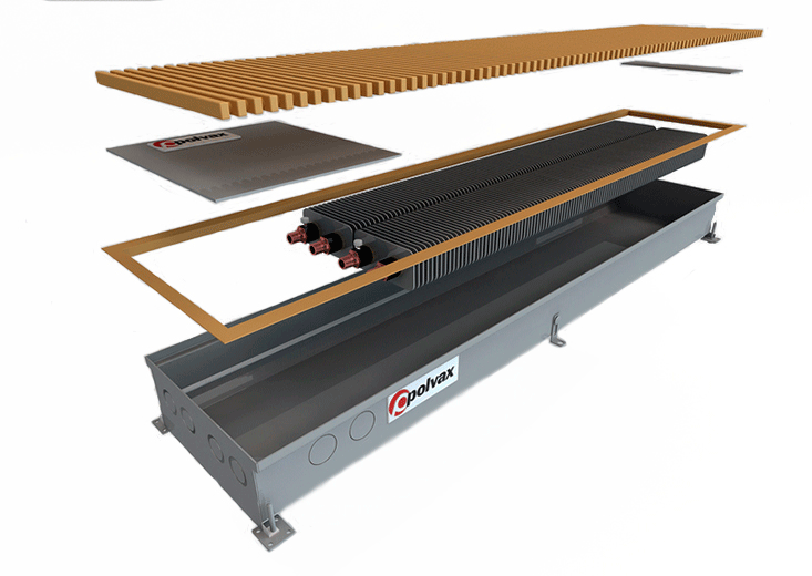 Внутрішньопідлогові конвектори з природною конвекцією Polvax KEM.300 – це опалювальний прилад з двома теплообмінниками та високою продуктивністю тепла в системах централізованого або індивідуального опалення, що встановлюється у сухих приміщеннях різного призначення, які мають велику площу скління або з низьким підвіконним простором. Конвектори Polvax з природною конвекцією знаходять застосування як єдине джерело системи опалення для сухих приміщень з невисокою потребою в обігріві, або в комбінації з іншими опалювальними приладами для відсікання холодного повітря від панорамних вікон, засклених балконів або лоджій, а невелика глибина коробів підлоги з обмеженою висотою.