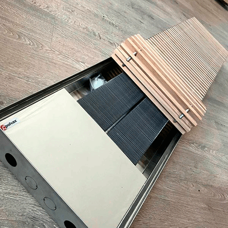 Дубові декоративні решітки Polvax – це елемент захисту теплообмінника та вентиляторів для конвекторів із природною чи примусовою конвекцією. Решітки Polvax виготовляються з дуба (стандартна комплектація) або каштану (індивідуальне фарбування в будь-який колір RAL), випускаються у двох варіантах профілю Standart (прямокутна форма) та Euro (закруглена).