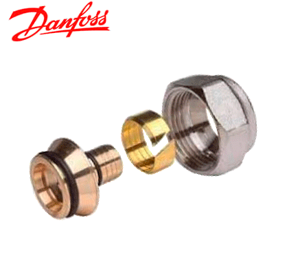 Робочий принцип колекторного фітингу для теплої підлоги Danfoss досить простий: цангове з'єднання (комплект зажимного кільця та гайки) стискає полімерну трубу, в яку вставлений штуцер опорної втулки. Обтискання відбувається шляхом затягування зовнішньої фіксуючої гайки. У процесі затягування гайки обжимне кільце починає деформуватися і відбувається тиск на зовнішню поверхню труби, при цьому внутрішня поверхня труби притискається до штуцера..