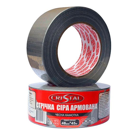 Скотч армований для ізоляції та матів теплої підлоги Cristal – це клейка стрічка на тканинно-поліетиленовій основі, яка має показник підвищеної міцності. На відміну від звичайного, армований скотч зверху посилюється тканинними волокнами та поліетиленовою сіткою, внутрішній шар покритий клейкою основою. Така стрічка міцніша за звичайний скотч в 3-5 разів і широко використовується для з'єднання і герметизації стиків теплоізоляційних труб і матів теплої підлоги.