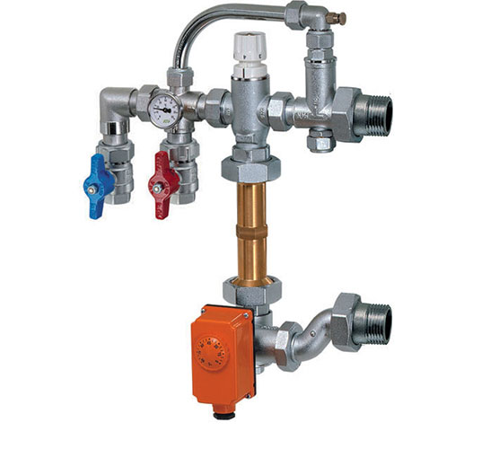 Регулюючий вузол FAR укомплектований ручним термостатичним клапаном, який вирівнює та підтримує температуру теплоносія в необхідних параметрах, а запобіжний термостат дозволяє уникнути перегріву опалення підлоги (обмежує температуру теплоносія, що надходить від котла в систему теплої підлоги і при підвищенні заданого значення вимикає насос). Компактні розміри значно спрощують монтаж та оптимізують робочий простір.