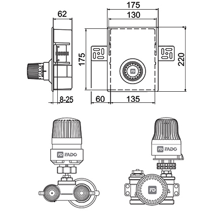 Унібокс для теплої підлоги Fado KLR01 – це регулювальний клапан обмеження температури теплоносія при організації системи опалення підлоги. Дозволяє створити контур теплої підлоги без застосування розподільчого колектора (гребінки).