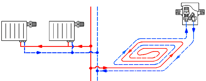 Унібокс теплої підлоги Oventrop RTLH 1022635: схема підключення.