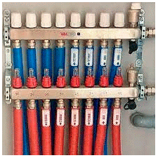 Колектор для теплої підлоги в зборі з витратомірами Valtec VTc.586 EMNX – це блок розподілу та регулювання теплоносія для систем опалення підлоги. Регулююча гребінка має балансувальні клапани з витратомарами, за допомогою яких налаштовується пропускна здатність кожного контуру, залежно від довжини труб кожної петлі. В результаті досягається правильне балансування контурів теплої підлоги та пропорційно розподіляється кількість теплоносія по системы поверхневого опалення.