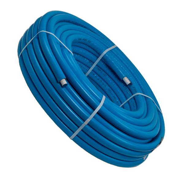 Металопластикова труба в синій ізоляції Valsir Pexal – це теплоізоляційний полімерний елемент трубопроводів, який дозволяє створювати інженерні системи опалення та водопостачання з мінімальними тепловтратами та тривалим терміном експлуатації. Труба має п'ятишарову структуру, що складається з внутрішнього шару на основі зшитого поліетилену PE-Xb, двох прошарків клею, алюмінієвого цільного шару (зварений встик поздовжньо), і зовнішнього поліетиленового захисного шару високої щільності. Зовнішня теплоізоляція виконана у синьому кольорі для позначення трубопроводів ХВП або зворотного контуру опалення.