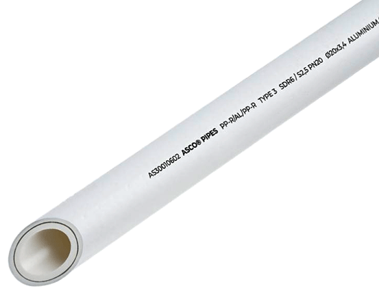 Поліпропіленова труба армована алюмінієм ASCO AS30010602 – це магістральний компонент систем гарячого водопостачання та водяного радіаторного опалення, що монтується з фітингами ППР за допомогою розтрубої пайки.