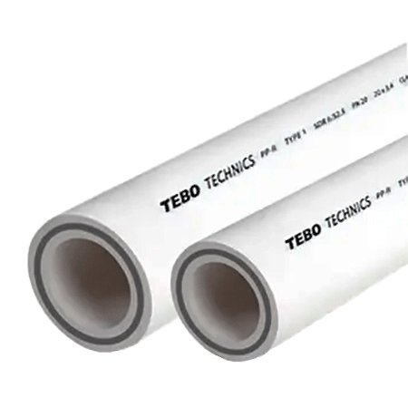 Поліпропіленова труба Tebo зі скловолокном (біла) - це турецька труба для бездоганної роботи в системах холодного та гарячого водопостачання.